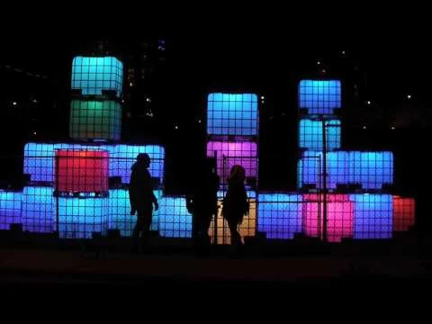 A giant glowing interactive sculpture made from reclaimed shipping containers. Currently installed at Dockside Green in Victoria.