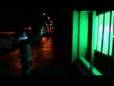 Motion-controlled LED painting wall, controlled with an X-box Kinect. Built by Monkey C with software developed by Limbic Media